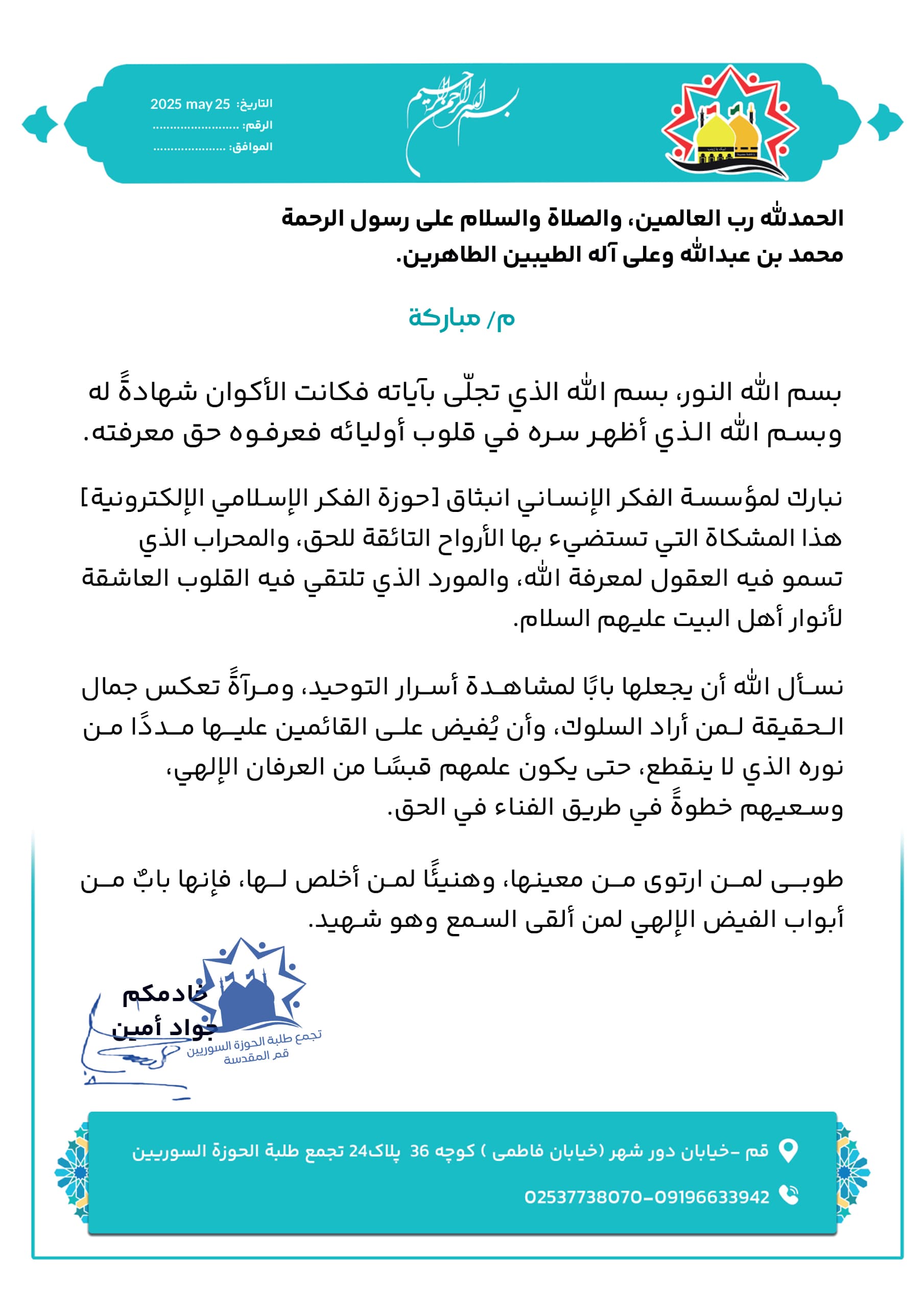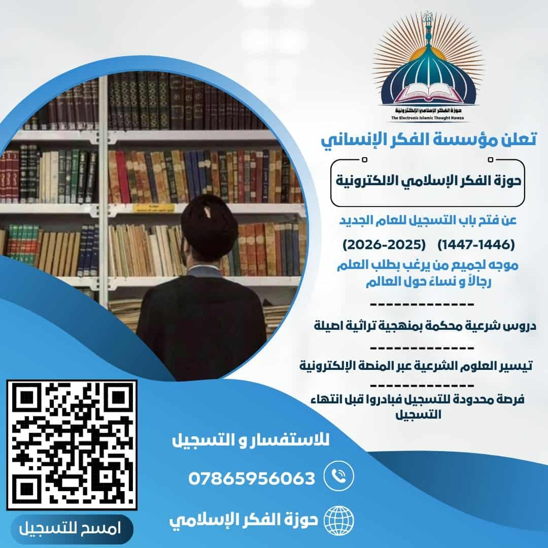 شروع التسجيل للعام الدراسي الجديد في حوزة الفكر الإسلامي الإلكترونية.